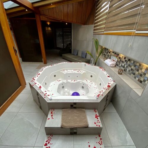 Especial: incluye 35 velas en el jacuzzi, 35 globos, detalle con pétalos dentro y fuera del jacuzzi, camino de pétalos, detalle con toallas, letras tomando en cuenta la temática (feliz cumpleaños, amor, aniversario).