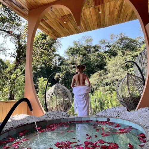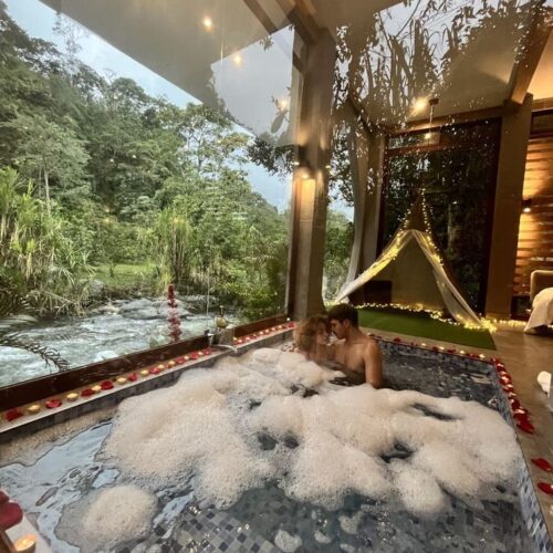 Especial: incluye 45 velas en el jacuzzi, 36 globos, el tipi en el área del césped sintético frente al rio decorado con luces, camino de pétalos, detalle con toallas, letras tomando en cuenta la temática (feliz cumpleaños, amor, aniversario).